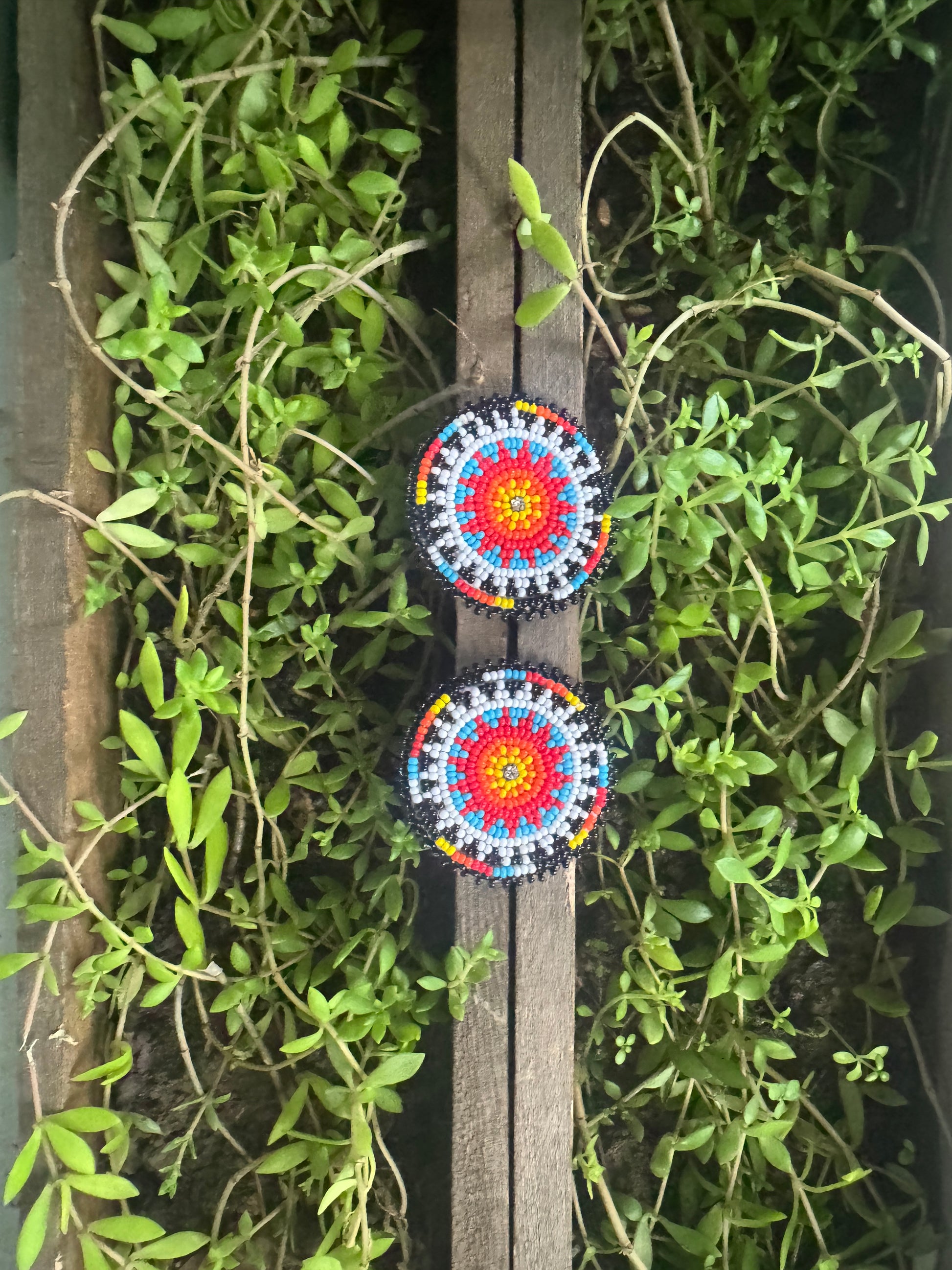 Handmade Beaded Round Post Earrings - Beaded Suns - (2")