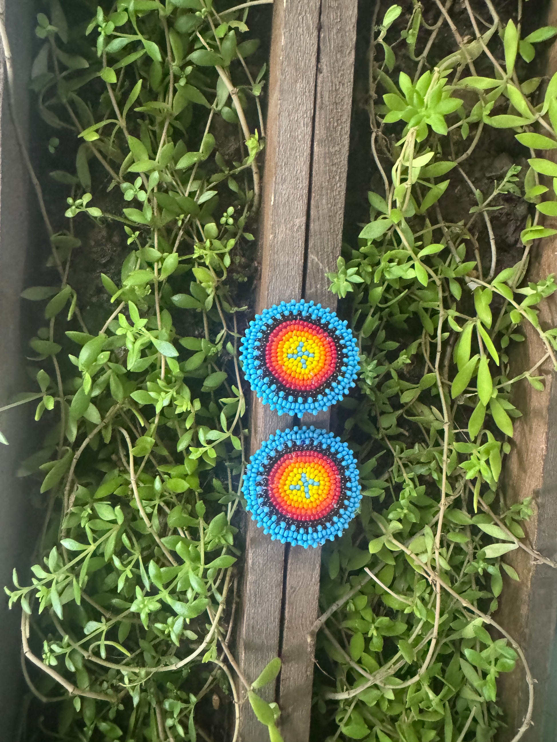 Handmade Beaded Round Post Earrings - Blue Base - (1.5")
