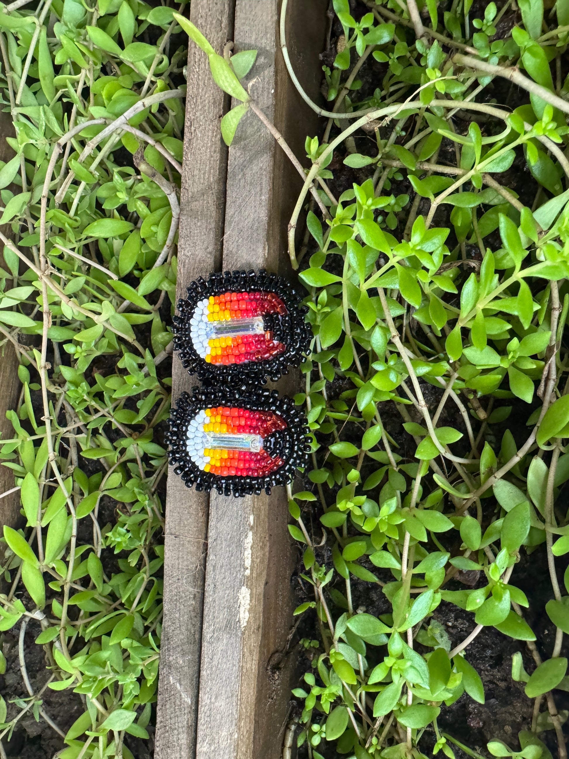 Handmade Beaded Rectangle Post Earrings - Medicine Wheel Colors - (1.5")